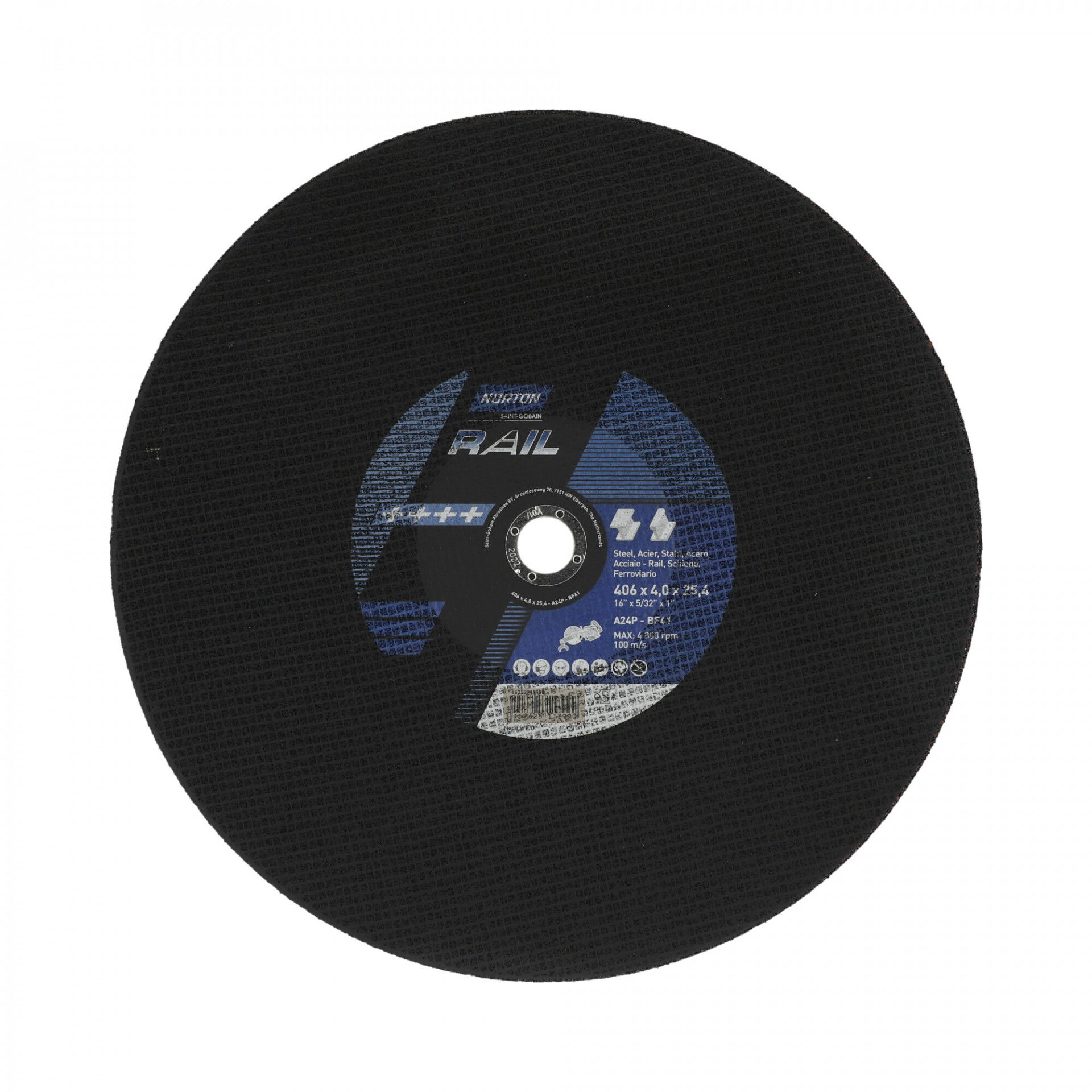 Norton Rail (Sín) vágókorong 406x4,0x25,4mm A24P Soft, 10 db/csomag