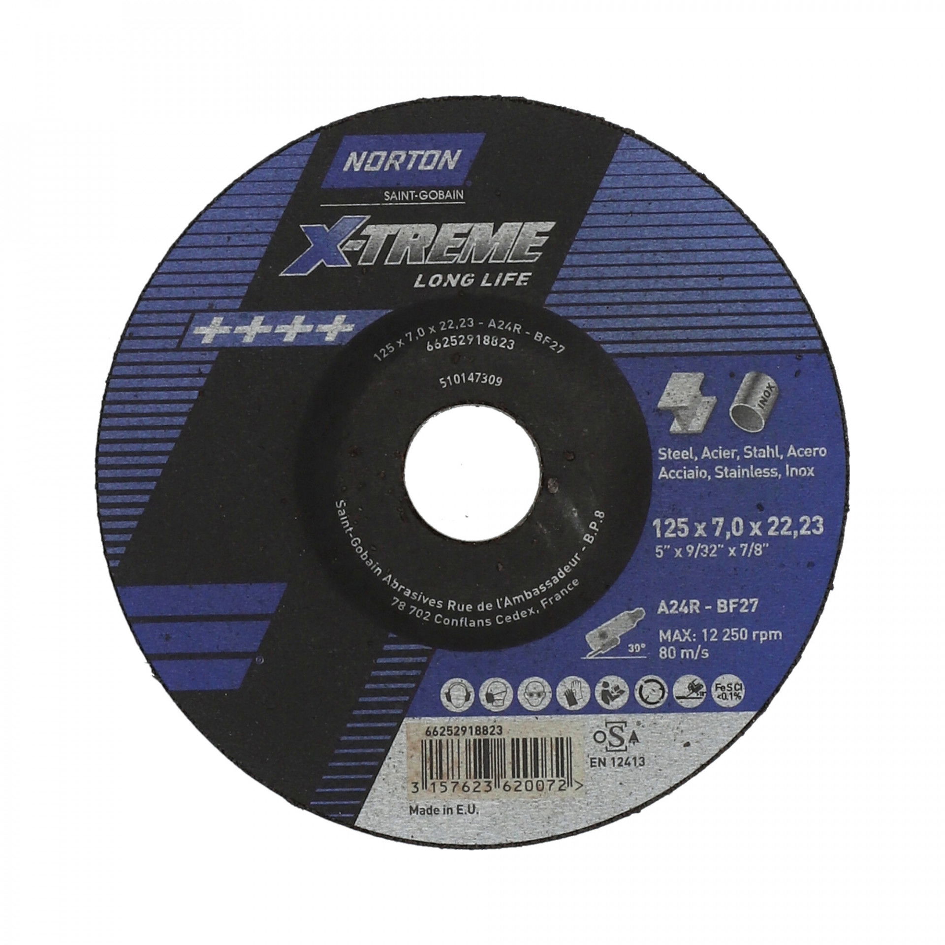 Norton X-Treme Life fém-inox tisztítókorong 125x7,0x22,23mm A24R, 10 db/csomag