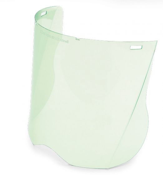 Karcálló polikarbonát arcvédő, belül párásodásgátló felületkezeléssel.